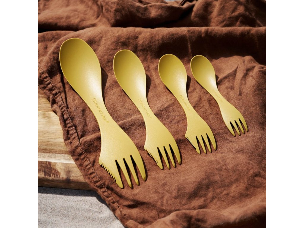 Spork: kombinace lžičky, vidličky a nože. Naše kombinace lžičky, vidličky a nože přináší trochu civilizace do divočiny a trochu divočiny do civilizace. Vytvořeno speciálně pro společnost Light My Fire skandinávským návrhářem Joachimem Nordwallem. Spork je úžasná pomůcka – vejde se do batohu, kapsy, do piknikového koše, kabelky nebo aktovky.